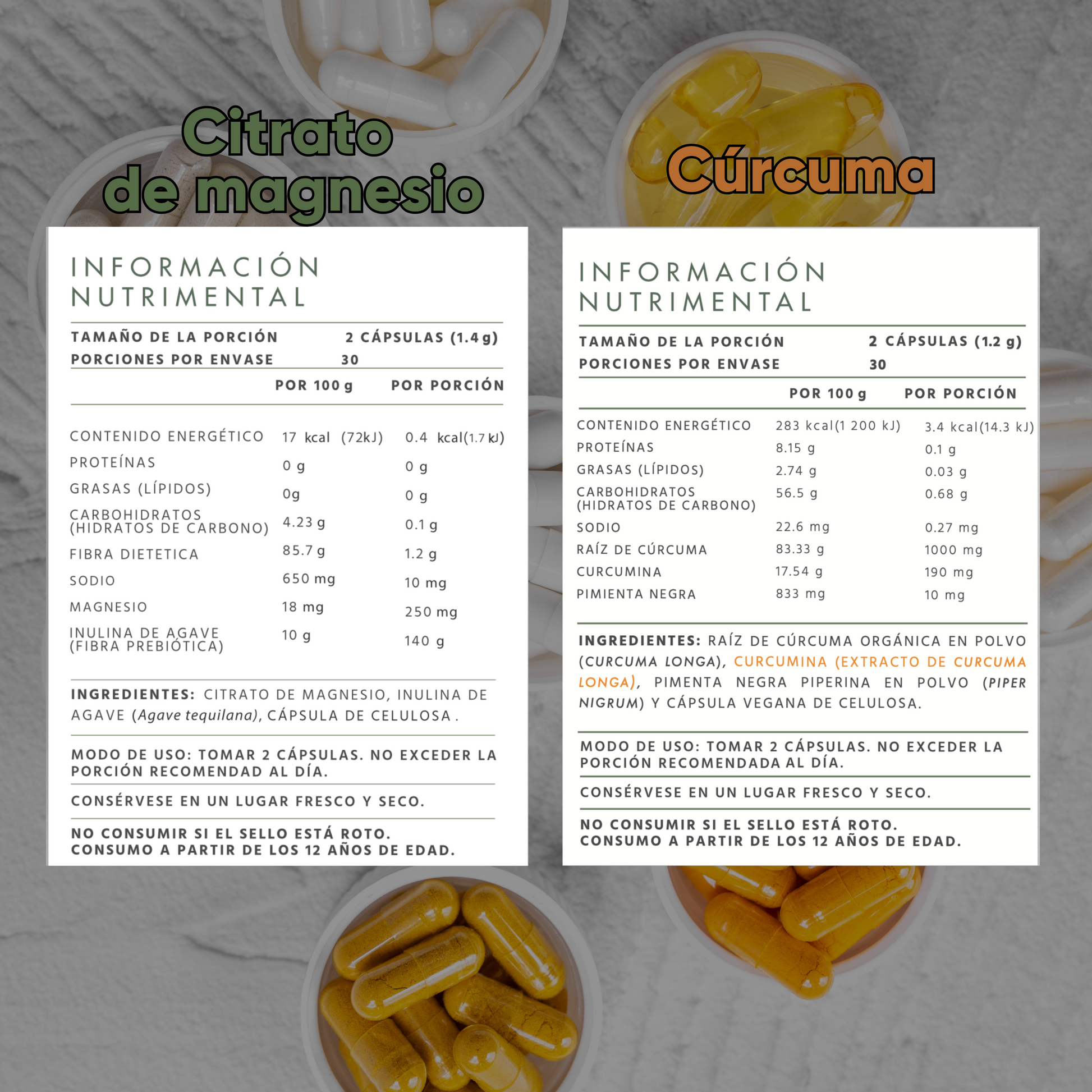 - 1 bote de 60 cápsulas de 250mg citrato de magnesio + inulina de agave orgánica en cápsula vegana.. Checa más info aquí